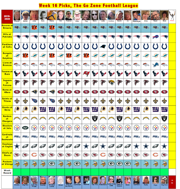 It appears Omaha, aka The Ultimate Auditor with his many useless titles, was awol for a good part of the week which affected the timely submission of picks. That in itself has triggered an investigation. Guido will chair that panel with the task of figuring out Omaha's timeline of misinformation and probably illiegal picks after the whistle so to speak. He divulged his picks today and still had two wrong!